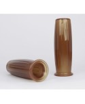 Poignées café racer vintage développées et produites par le fameux préparateur japonais Posh. Ces poignées conviennent aux guidons de 22mm de diamètre et sont de couleur marron vintage. Elles existent également pour les guidons de 25, 4mm, ainsi qu'en couleur rouge pailleté, gris fumé (anthracite) pailleté, transparent silver pailleté, transparent foncé pailleté, noir ou blanc uni. Ces poignées sont très confortables et on un touché soft très agréable.
