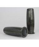 Poignées café racer vintage développées et produites par le fameux préparateur japonais Posh. Ces poignées conviennent aux guidons de 1 pouce (25, 4mm) de diamètre et sont de couleur smoke (gris fumé foncé) avec paillettes, effet metal flake très prisé des années 70. Elles existent également pour les guidons de 22mm, ainsi qu'en couleur rouge pailleté, gris fumé (anthracite) pailleté, transparent silver pailleté, transparent foncé pailleté, noir ou blanc uni. Ces poignées sont très confortables et on un touché soft très agréable.